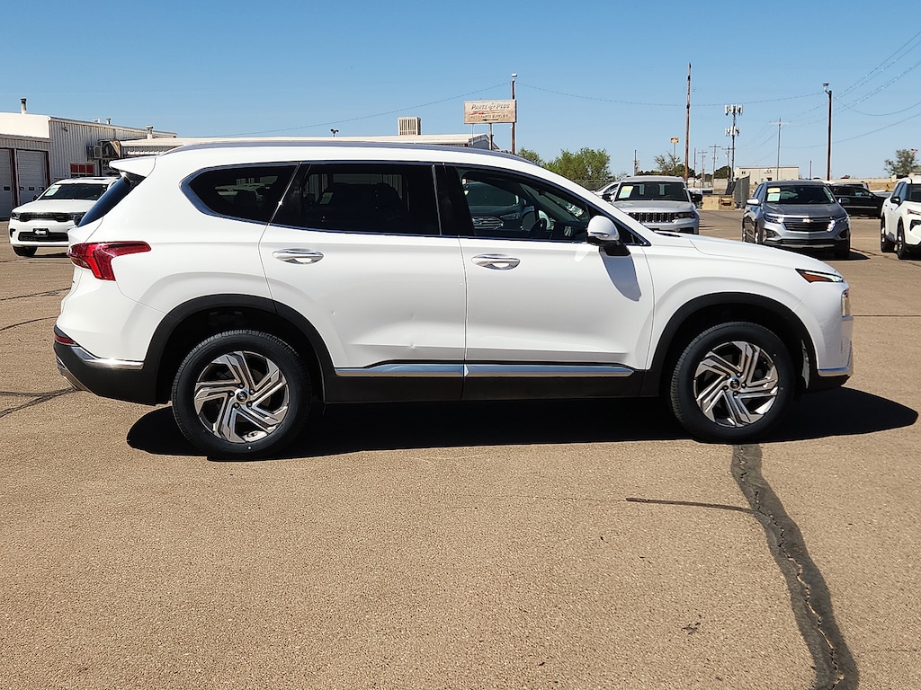 Serenity White Pearl 2023 Hyundai Santa Fe SEL AWD 8-Speed Automatic with SHIFTRONIC 2.5L I4 172 Point Inspection AWD Black Artificial Leather.